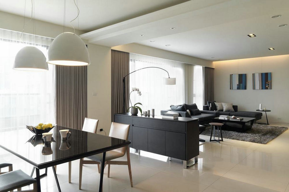 客餐廳位于同一空間,加上一體式的吊頂設(shè)計,延伸出不少視覺感,同時更好提升了空間利用率。地面通鋪灰色柔光磚,恰到好處的冷色調(diào)既不突兀又耐看。