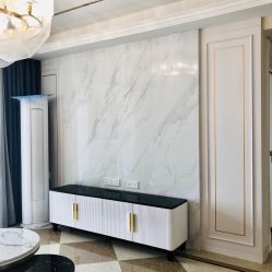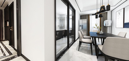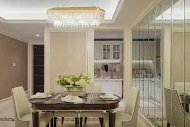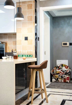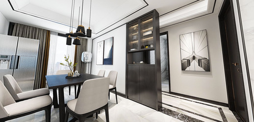 我自己做IT產品經理人,比較喜歡看港劇,愛好戶外活動,本身也是從事科技行業(yè),四室兩廳的戶型比較開闊,滿足四口之家的生活需求,所以硬朗的港式風格比較適合,家里人多,所以選擇六人餐桌,依舊以石材為主,不銹鋼元素融于其中。細節(jié)體現出現代港式獨有的前衛(wèi)、不受拘束的感覺。白色開放式酒柜隔板設計巧妙,便于收納又美觀。這些都是跟設計老師溝通過來確定下來。